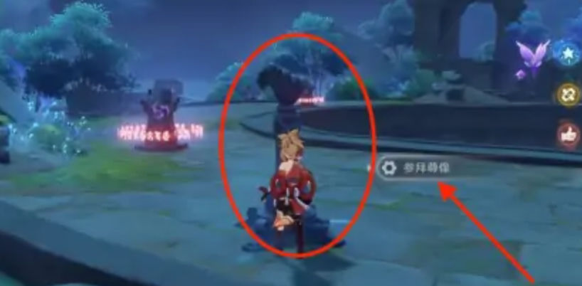 1、在水月池找到【参拜尊像】,解锁雷探针。
