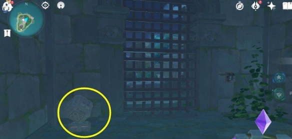 7、启动铁门旁的立方体机关,水位全部下降。