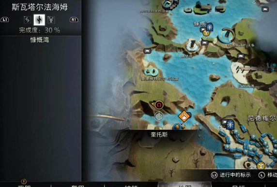 位于瓦塔尔法海姆慷慨湾,如图位置,只需要用芙蕾娅的魔法将水域的门打开便可以收集到世界之树的符文之力露水。