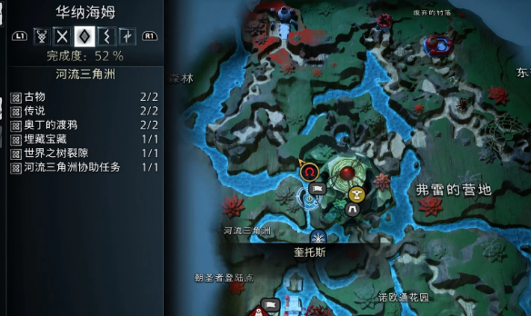 世界之树的运气露水位于华纳海姆河流三角洲的如图位置。