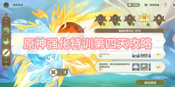 动作格斗3.2版本活动中,旅行者们参加了[月莲杯]的比赛。在捕捉到蕈兽并激发其潜能之后,我们还可以去往特训场地对蕈兽们进行特训。今天小编为各位玩家带来了原神强化特训第四天攻略,有需要这个攻略的玩家快来看看吧。