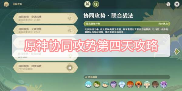 以上就是这篇文章有关原神协同攻势第四天攻略的所有内容了,这样就能够顺利完成潜能激发了。更多游戏相关资讯内容,敬请关注大三软件站。