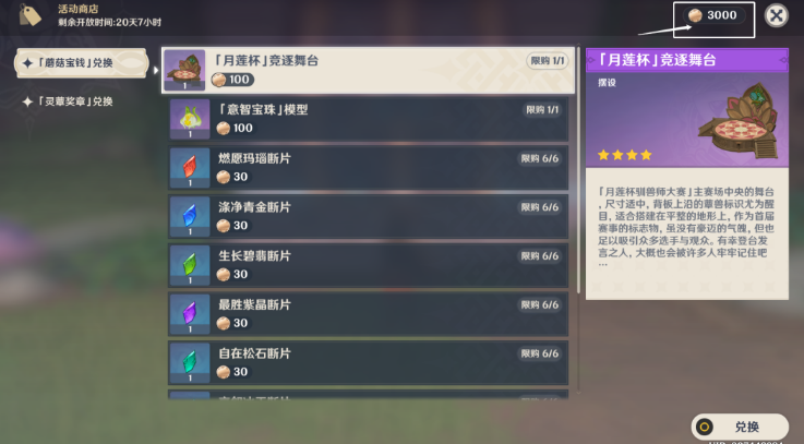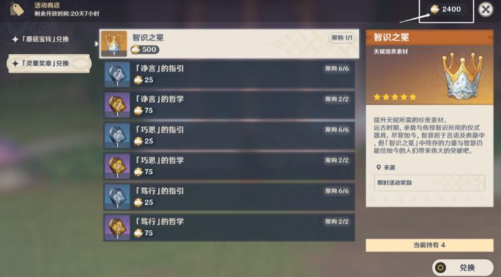 20、1400「灵蕈奖章」可兑换全部。