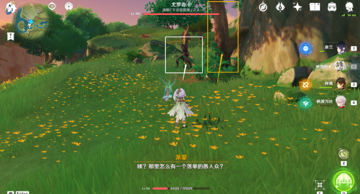 15、前往图中树旁,会出现愚人众·由罗奇卡。