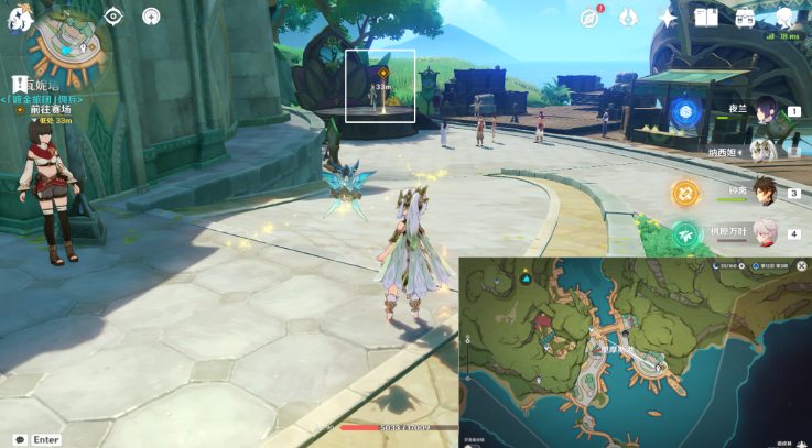 3、传送奥摩斯港,前往赛场,与莱依拉对话。