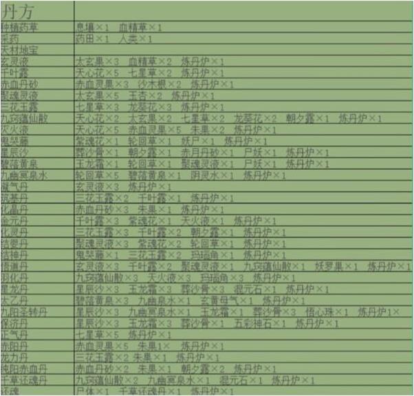 | 药田 | 息壤×1神木×2玄石×1人类×1 |