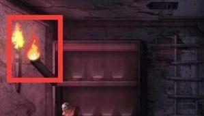 之后点击画面左下方的木棍,将木头放在做墙壁上的火上点燃,获得一个火把。