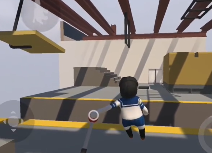 11、拿着另一个黄色撑杆过去,放在下面的承重机关上。