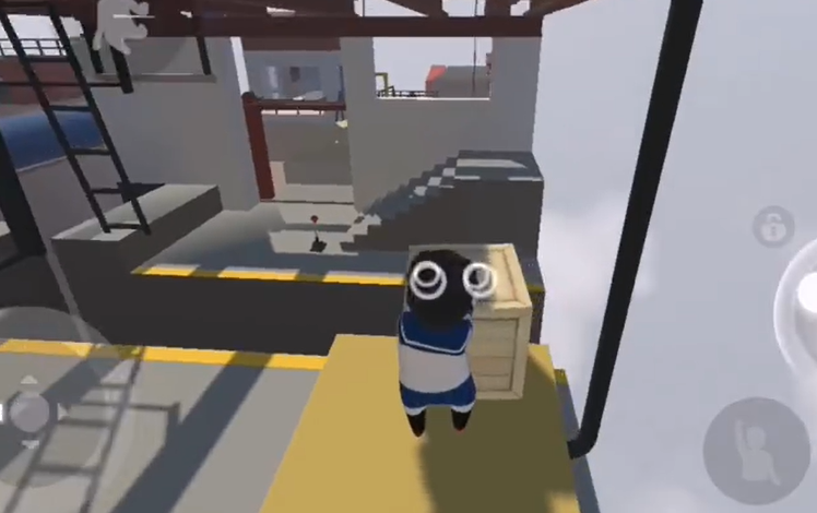 6、将操作杆向右拉,来回利用惯性,让大铁球砸碎墙壁。