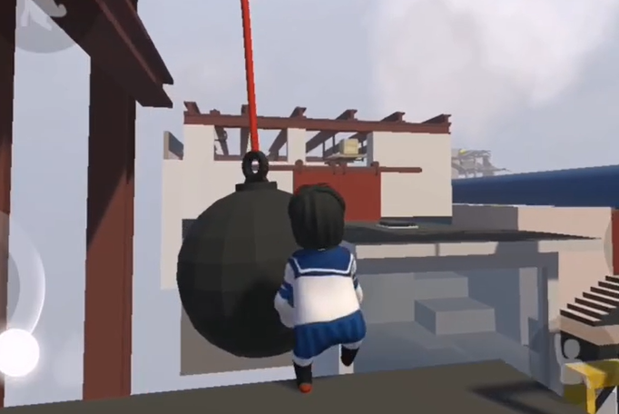 2、将窗户前面的摇杆拉到最右边,吊着的大方块就可以将墙砸碎。