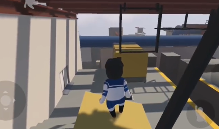 17、通过打开的门,拉动摇杆,让对面的黄色平台晃动起来,爬到黄色平台上面。
