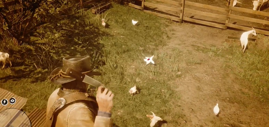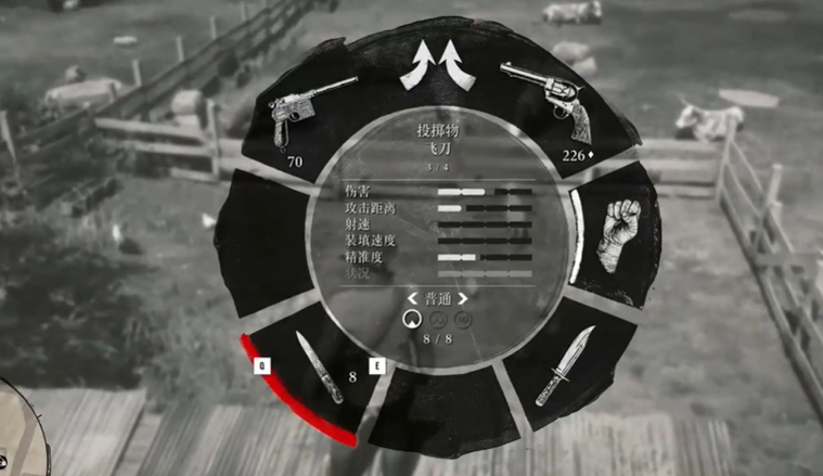 3、然后在武器轮盘里面选择飞刀并用死神之眼锁定鸡圈的小鸡,击杀三只小鸡后即可完成本挑战。