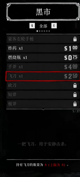 1、我们来到翡翠牧场如图标记的位置,在翡翠牧场的黑市前买满八把飞刀。