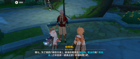 和NPC哈特姆交流之后,要求提供一份好运食物,其实给什么食物都可以,越美味越容易大赚,给一些普通和奇怪料理就会大亏。