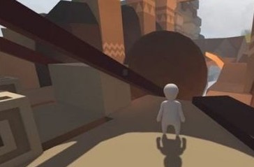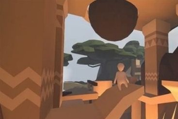 32、看好时机从平台跃向石球的上方,通过跳跃调整人物的姿态,然后向后方持续走动让人物保持在石球的上方不会掉下来。