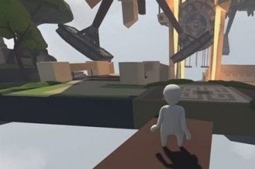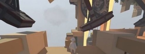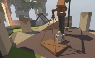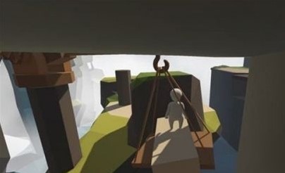 39、先将身边的木块放到跷跷板一侧,向被抬起的另一侧冲刺跳跃后抓住对面高台上的木板,可将木板拉下来。