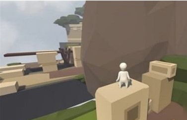 7、先从石台爬上右侧木笼的上方,利用人物将左侧木笼抬升。