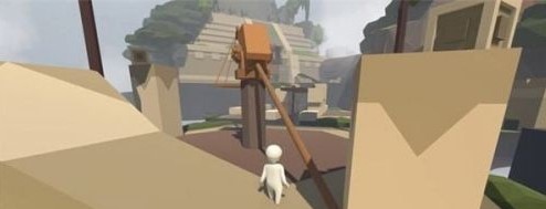 76、跳下吊块,就知道只靠一个木块的重量不能使机关门打开足够的空间,正常的做法就是增加重量,再往吊块上拖放一根木桩,这个操作不仅难度非常大,而且木桩非常容易从木板上掉落。