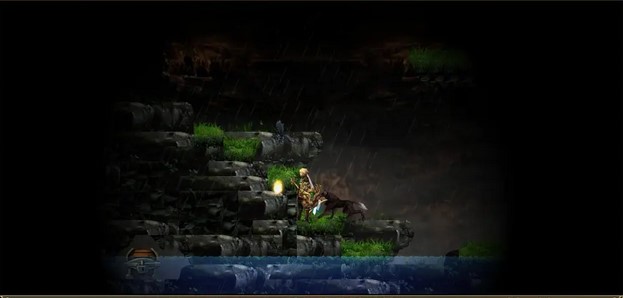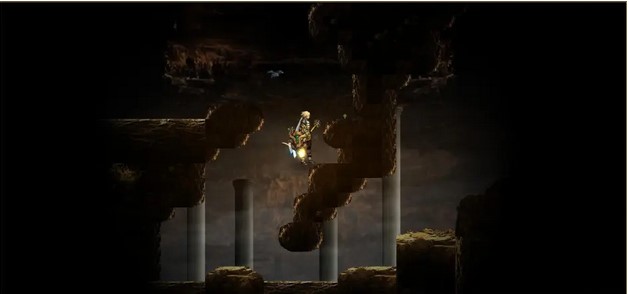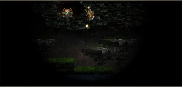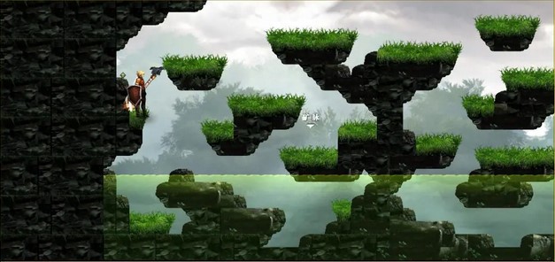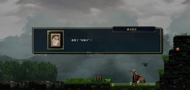 下图一中上方有个靶心,可以站在右边高台阶使用弓箭二段跳可以射中。宝箱也在上面高台,需要到有石门的那个小山第二个台阶用二段跳跳上去。