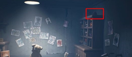 此时回到房间的入口处,拉开抽屉后再爬上货架。到达电闸房间上方即可获得。