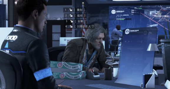 4、之后汉克回到警局,与康纳聊天,选养狗或音乐即可。