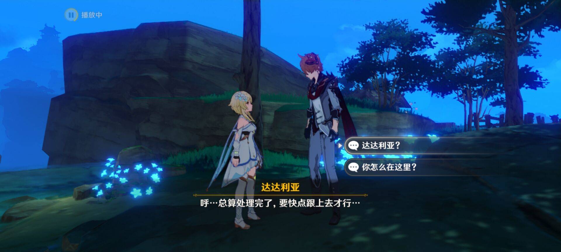 6、可以看到达达利亚就在传送点旁边的石头上。