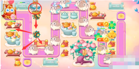 3、在左上角放置一个多重箭,开始清理附近障碍物,这一关卡有吊索兔,要小心一点。