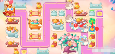 2、开始的时候放置一个风扇,先把下面的壶打了,放上元宝,之后在清理怪物。