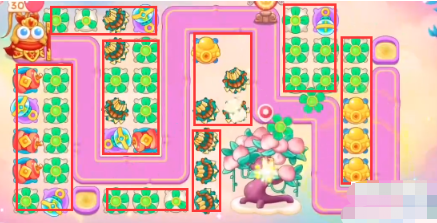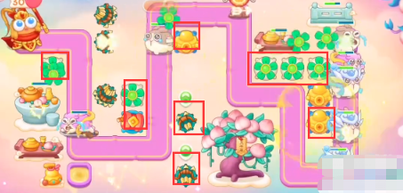 5、仙女出现,根据仙女出现的位置放置炮塔,打完仙女之后在各个区域里面放置泡泡塔减速。