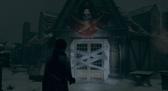 3、到达游乐场后,在街道旁有个大房子,从侧面的窗户调查后进去。