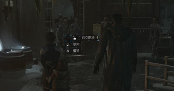 6、然后去与卢瑟聊天,此时大批仿生人闯进来,此时选择对空开枪,警告他们。