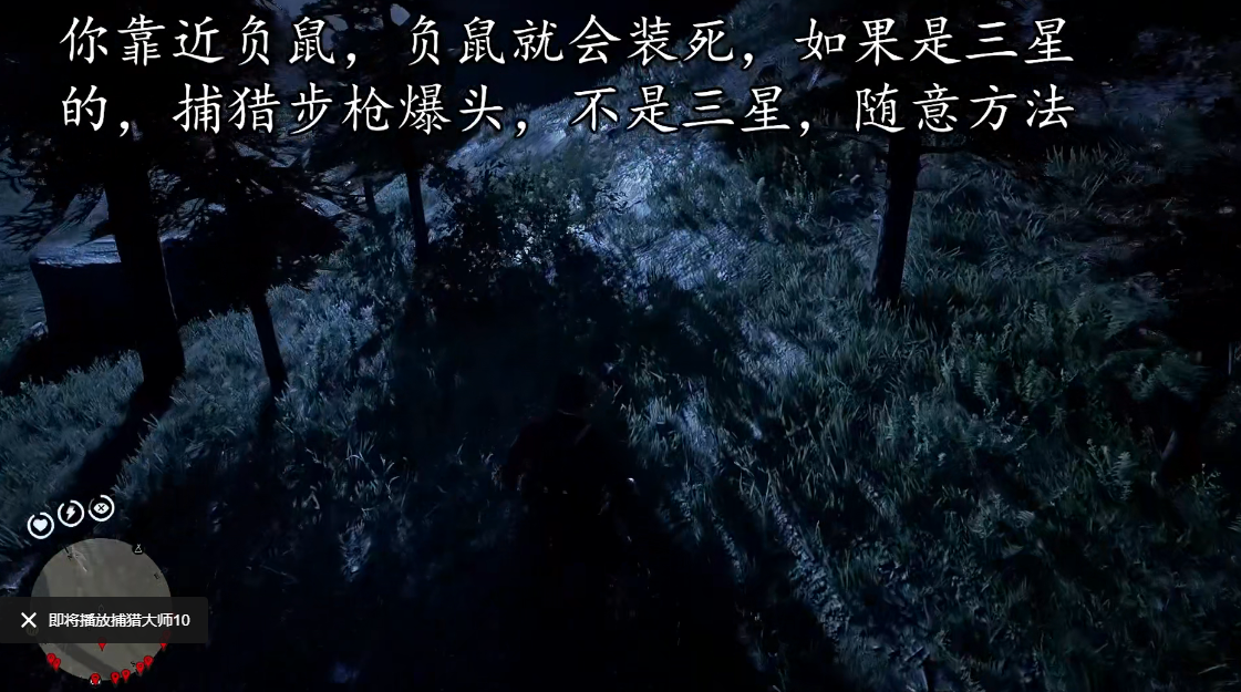 2、当你靠近负鼠时,负鼠就会装死,如果是三星负鼠就使用捕猎步枪爆头,如果不是就随意处置。