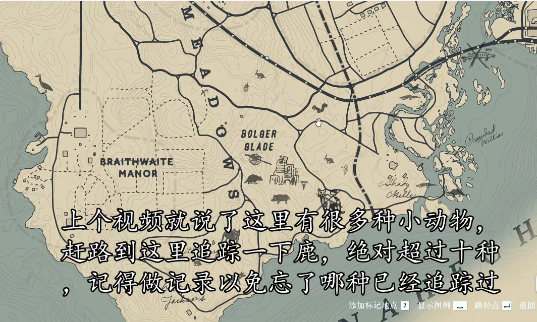 1、还是来到地图下方的老战场,这里有非常多的动物,我们追踪时别忘了做记录,防止忘记是否追踪过。