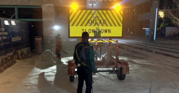 7、之后与诺丝到警告牌处解放工人。将警告牌放到路中间。