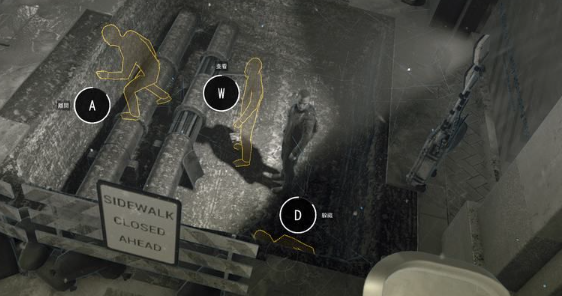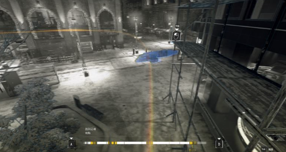 6、到左边脚手架处模拟跳跃,然后摧毁无人机。