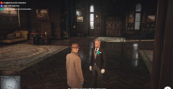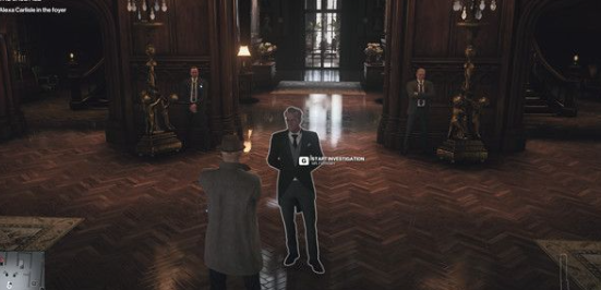 3、当对话结束后,待侦探走到右边的走廊,将其击倒并换他衣服。