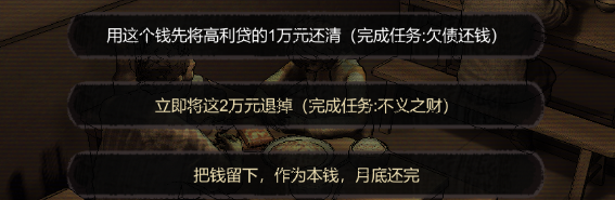 选了这个选项之后我们就可以使用定金来还上高利贷了,可以完成欠债还钱的任务。