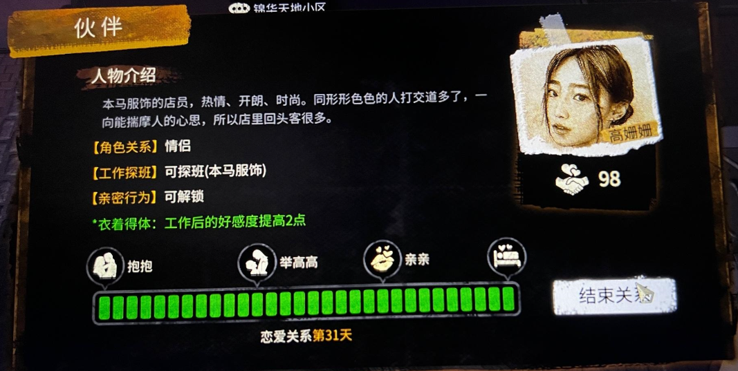 5、特性:衣着得体,工作后的好感度提高2点。