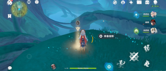 4、靠近准备留影,拍照前换上单手剑角色,使用元素战技,点击拍照,完成任务。