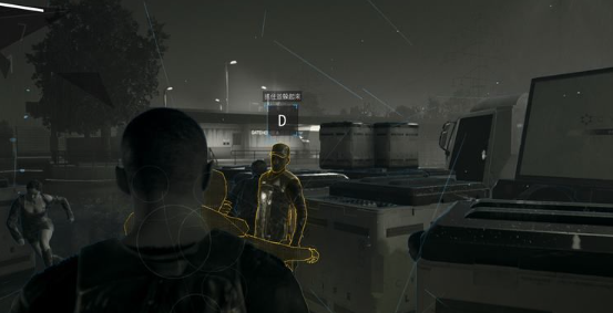 3、在将无人机摧毁后,搜刮货箱内的物资,此时巡逻人员出现,将其抓住并藏起来。