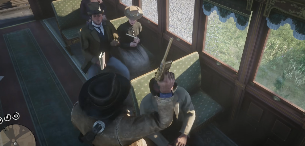 3、在到站后,我们掏出枪开始抢劫车内的乘客,主要抢劫的是豪华车厢的乘客,他们非常有钱,只需要抢劫5到6名乘客即可完成挑战。