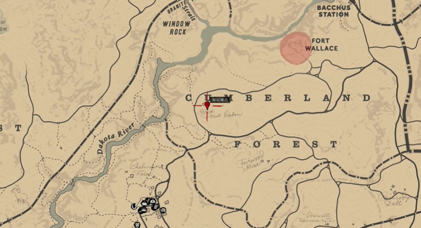 1、我们前往华莱士堡西侧的六点木屋,如图所示标点的位置。