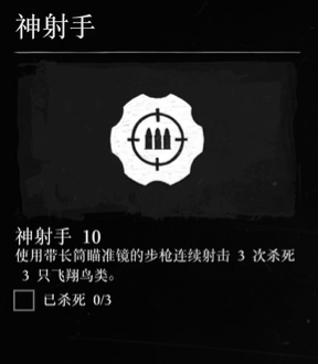 神射手10的目标是使用带长筒瞄准镜的步枪连续射击3次杀死3只飞翔鸟类。
