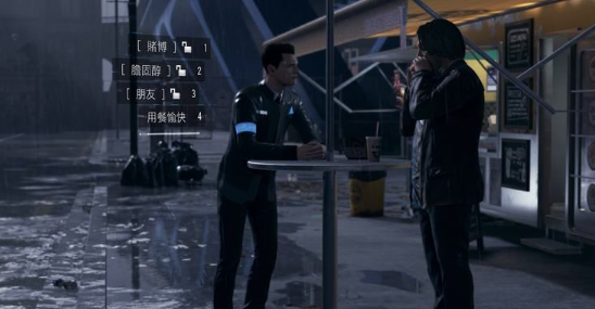 2、在汉克吃饭时,与其对话增加好感度,面对汉克的问题,选择说实话。