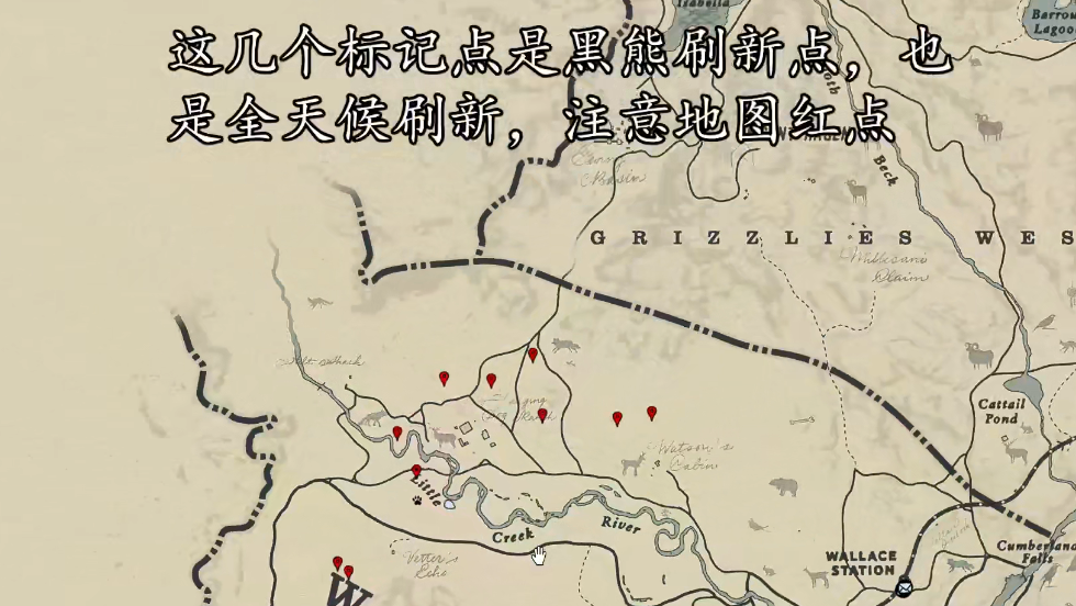 3、如图所示标点位置是黑熊的刷新点,也可以过来击杀黑熊。