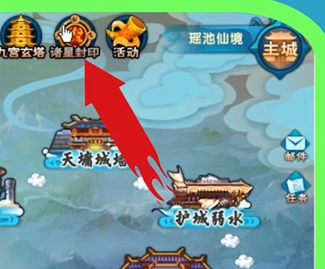 2、开启后在游戏地图右上角会出现“诸星封印”按钮,点击就能进入。