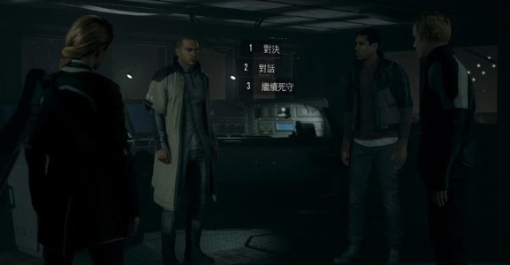 3、此时马库斯与诺丝正在指挥部中谈论关于未来的事情。选择对话走和平路线。