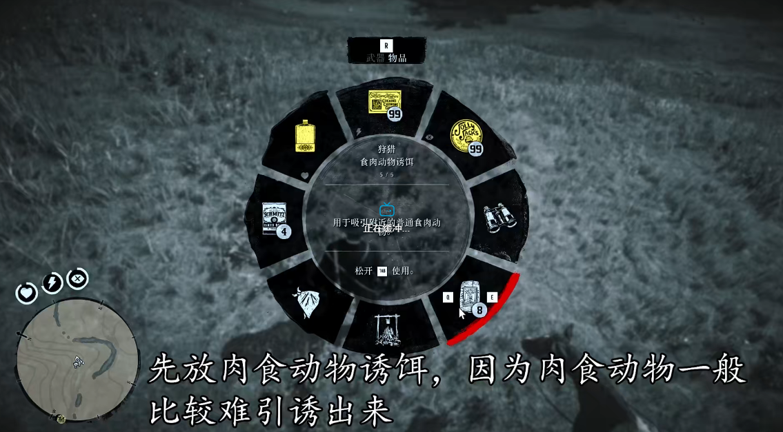 2、之后在地上放下肉食动物诱饵,因为肉食动物较难引出。