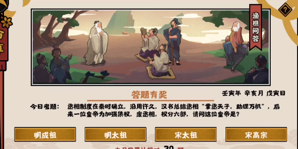 今日考题:丞相制度在秦时确立,沿用许久,汉书总结丞相“掌丞天子,助理万机”,后来一位皇帝为加强集权,废丞相,权分六部,请问这位皇帝是?
