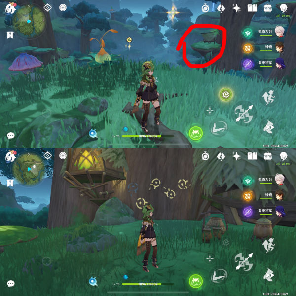 5、第五个位置:先飞到第四个位置对面大树的最高平台。第五个激活后先回到第四个位置。